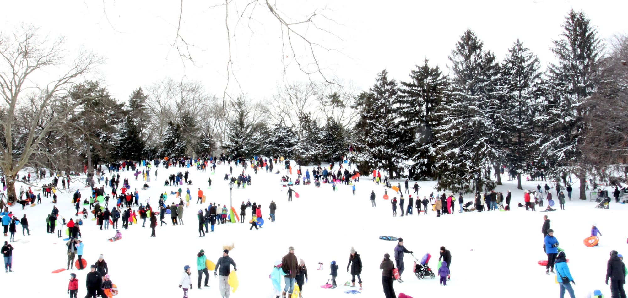 Whether it’s on a high-tech toboggan, a patched up inner tube or a purloined garbage can lid when it comes to sledding it’s location, location, location. And the best place, by overwhelming consensus, to ride the snowy slopes is Pilgrim Hill. Just north of the 72nd St. entrance at Fifth Ave., Pilgrim Hill offers a steep slope that levels out to a gentle finish, giving the sledder’s dream ride – maximum velocity, minimum bruises. Runner up, in Case Pilgrim Hill is looking like rush hour on the BQE is Cedar Hill between 76th and 79th st. just south of the Metropolitan Museum of Art.